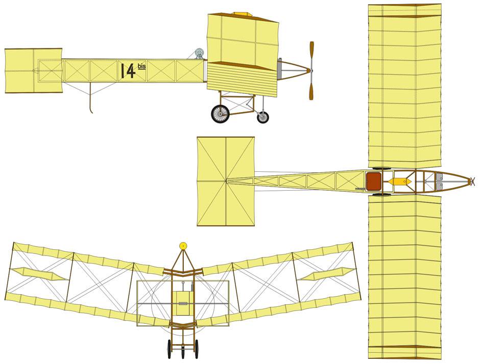 На заставке - чертеж аэроплана "Сантос-Дюмон" 14бис после доработки, с установленными элеронами.