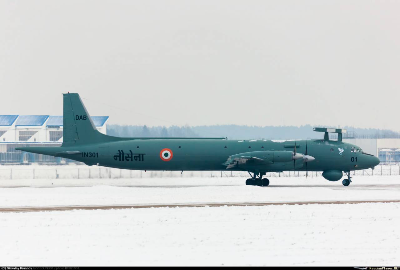 Завершивший ремонт противолодочный самолет Ил-38SD (индийский бортовой номер IN301) авиации ВМС Индии. Самолет постройки 1970 года был поставлен Индии в 1977 году.