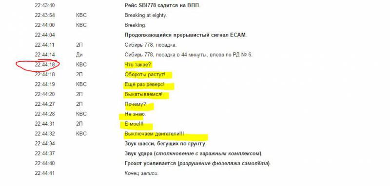 По словам, пограничника, самолёт вместо набора высоты вдруг начал резко снижаться. Военнослужащий заявил, что всё было похоже на то, будто бы самолёт пытался сесть на воду. При этом скорость самолёта была невысокой, а его нос – странным образом задран вверх. При касании самолёта с поверхностью воды хвост авиалайнера отвалился, и самолёт быстро затонул.
