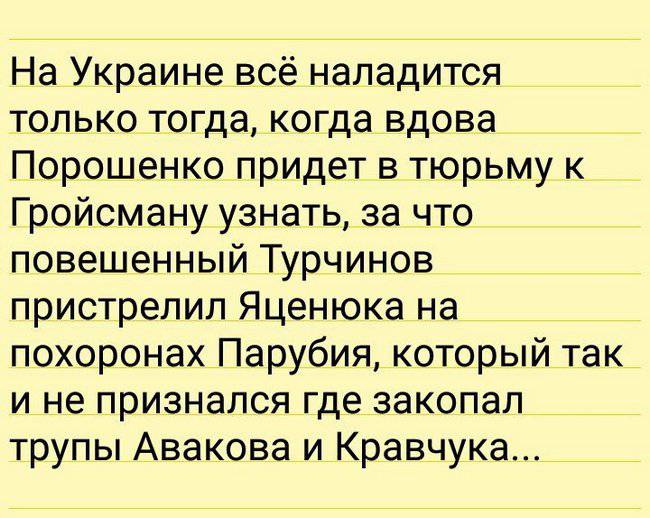 А либерал-неотроцкисты-неоконы Обамы, Клинтоны, Соросы, Маккейны, Грэмы и другие строители «мировой демократии», будут уволены от большой политики Трампом. Пинчук получил об этом инсайдерскую информацию, будучи в Америке, и поспешил доложить всей Незалежной. Может быть, фраза Порошенко: «украинская оккупация – это временно», - не оговорка по Фрейду, как все считают, но результат ознакомления с пинчуковской информацией? По факту, Порошенко сказал ведь в тон статье Пинчука - вот что делает волшебная новогодняя ночь, мозги поправляющая! С Новым 2017 годом!