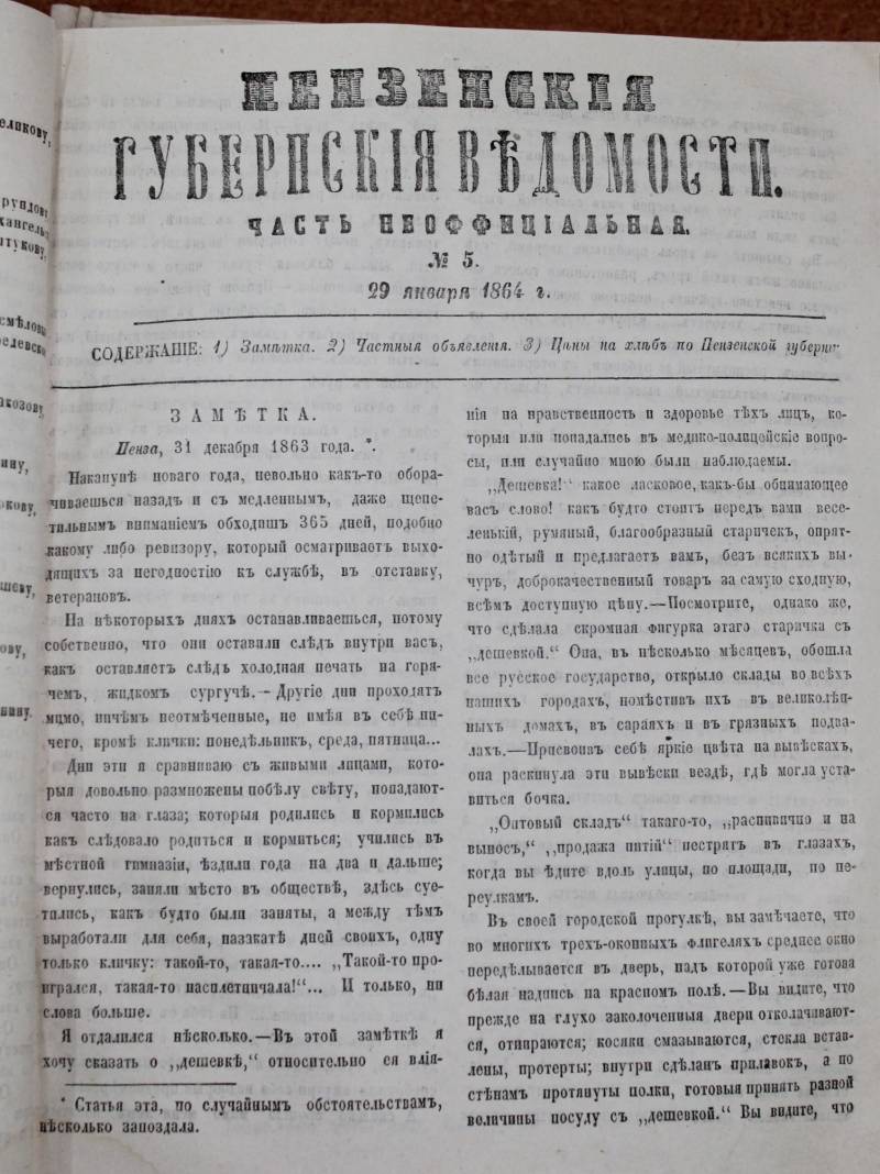 Показательно, однако, что робкие ростки свободомыслия в тех же самых «Пензенских губернских вестях» появились практически сразу после начала «Великих реформ». Дело в том, что стали появляться чисто журналистские материалы, где авторы размышляли о происходивших переменах и делали о них выводы, что было абсолютно нехарактерно для печати предшествующего периода.