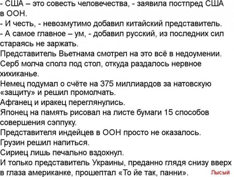 И в связи с этим нелишним было бы вспомнить, как часто ставившие ультиматум России отступались от своих требований и с удивительной для нас лёгкостью меняли линию своего поведения в отношениях с Россией. Может сложиться у некоторых мнение, что вот такие они легкомысленные и ветреные, западные политики. Но это не совсем так, дорогие читатели. За этой политической «легкомысленностью и ветреностью» стоит банальная трусость и опасение получить достойный ответ от неслабого оппонента. Вот посмотрите, как идёт накачка Трампа и общественного мнения со всех сторон на Западе. Начиная со слов гордости за решение отца нанести удар по авиабазе в Сирии (суверенном государстве, надо заметить) со стороны дочери Трампа — Иванки, словами одобрения со стороны самого Трампа в адрес американских военных («…достойно представили США!»), обещаниями американского руководства и впредь разговаривать с Россией с позиции силы и заканчивая «угрожающим», «ударным» визитом в Москву госсекретаря США, происходит формирование воинствующего истеричного настроя во всём вассальном окружении Америки. Все дружно и истерично настраивают себя (ну и, соответственно, американского президента в первую очередь) на воинственное противостояние с Россией. Почему-то возникает стойкая ассоциация в лучших голливудских традициях, когда струхнувшего бойца его секунданты подбадривают ободряющими словами: «Давай! Ты же можешь! Наваляй этому русскому!» и тот поневоле вынужден делать попытки «навалять», будучи не уверенным в своих силах.