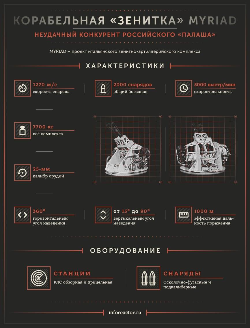 Корабельный зенитный артиллерийский комплекс MYRIAD. Инфографика