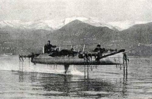 Первопроходцем в этой сфере был американский конструктор Роберт Фрайер. После 12 лет опытов и экспериментов он построил небольшое судно, буквально ездившее по воде. Экспериментальное судно Alice, спущенное на воду в начале восьмидесятых годов XIX века, получило треугольный корпус с плоским дном, имевший в «углах» три гребных колеса с приводами от парового двигателя. Предполагалось, что такая конструкция позволит судну не только перемещаться по воде, но и подниматься на сушу. Тем не менее, на практике все оказалось куда хуже, и «Алиса» не оправдала ожиданий. Работы были остановлены.