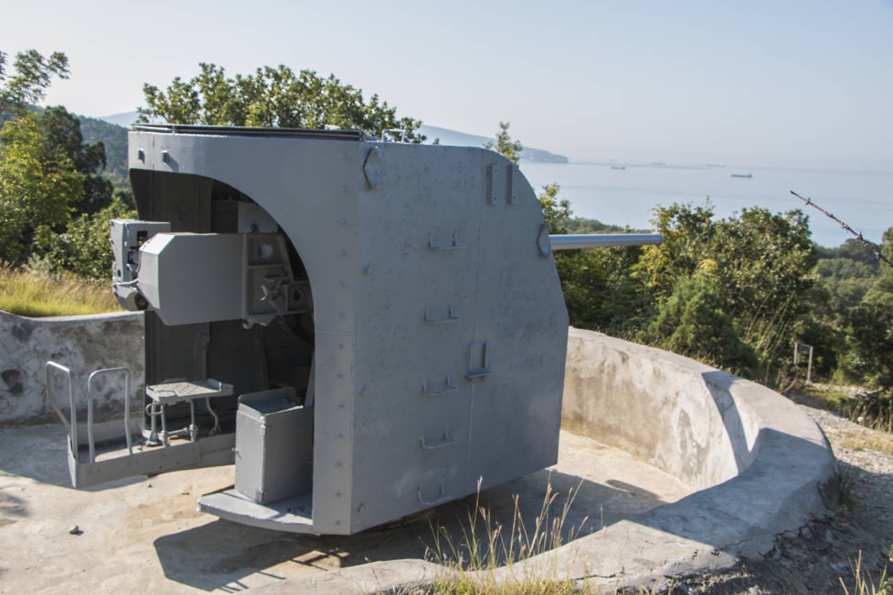 Кто придет на это место, пусть не удивляется тому, что его сперва встретят 130-мм орудия. Их привезли сюда много позже, а оперировала батарея в те годы именно стомиллиметровками. 100-мм орудия присутствуют, тут все в порядке.