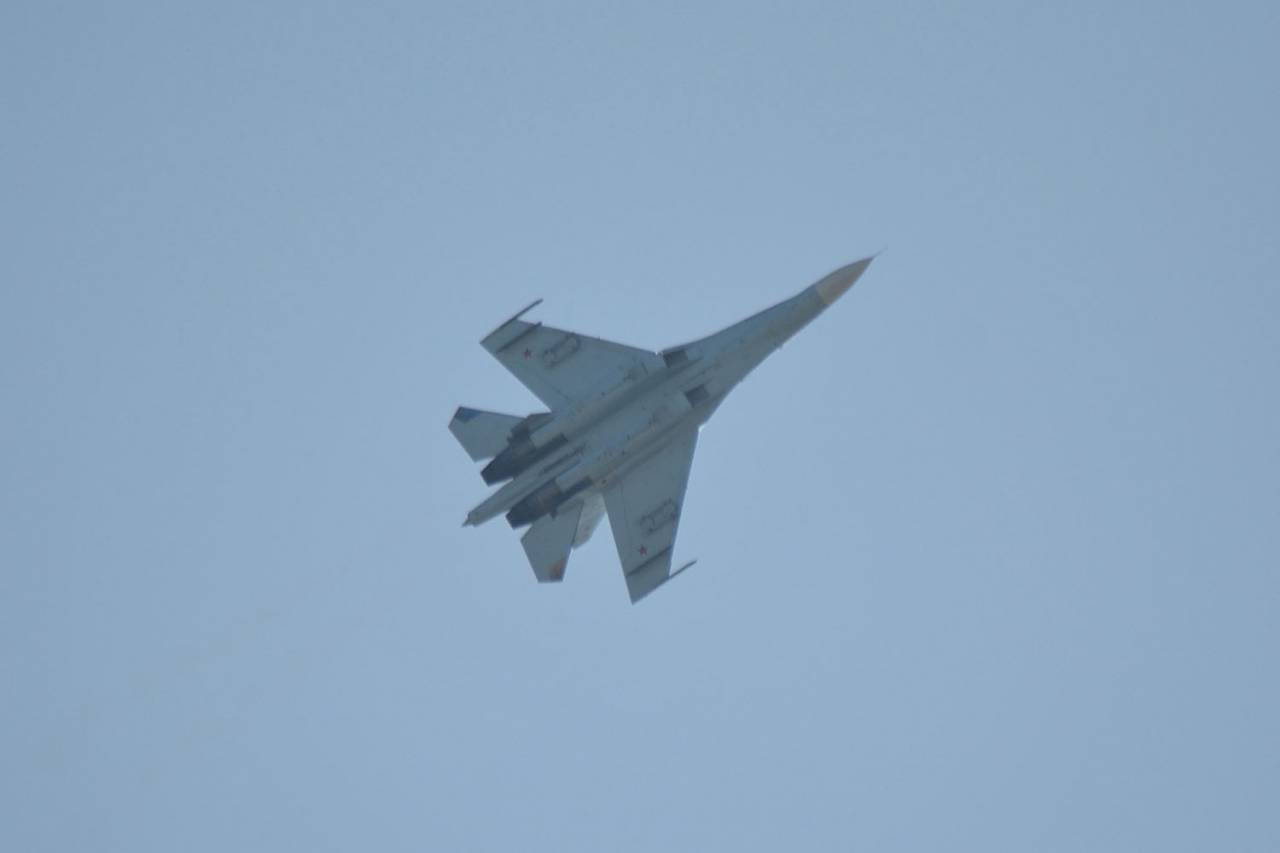 Справившись с условным противником, летчики на Су-27 защитили район реки и праздник продолжился. Вскоре перед зрителями появились современные образцы авиационной техники. Однако эта часть парада длилась не слишком долго. Вскоре в показательное сражение пришлось вступать новым подразделениям.