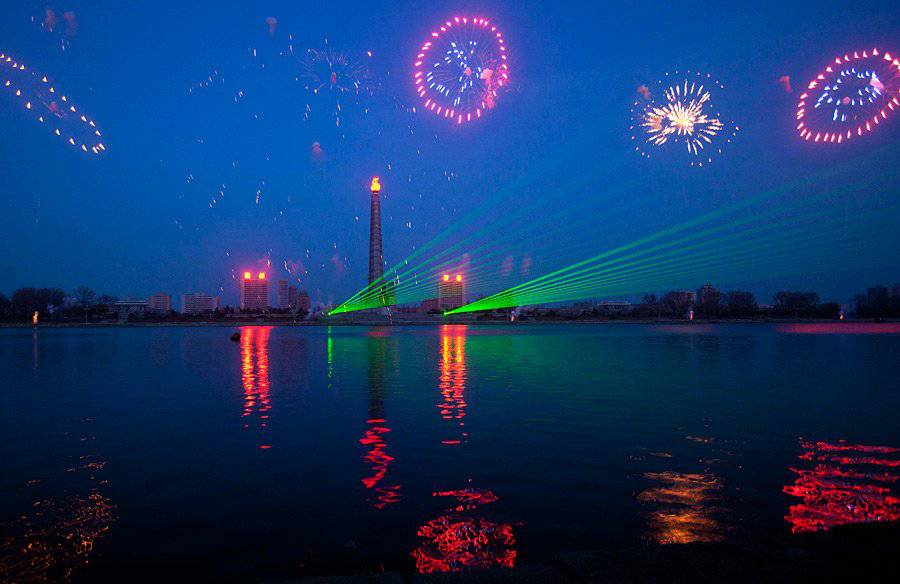 Салют и лазерное шоу в Пхеньяне, посвященные 100-летию со дня рождения основателя КНДР Ким Ир Сена