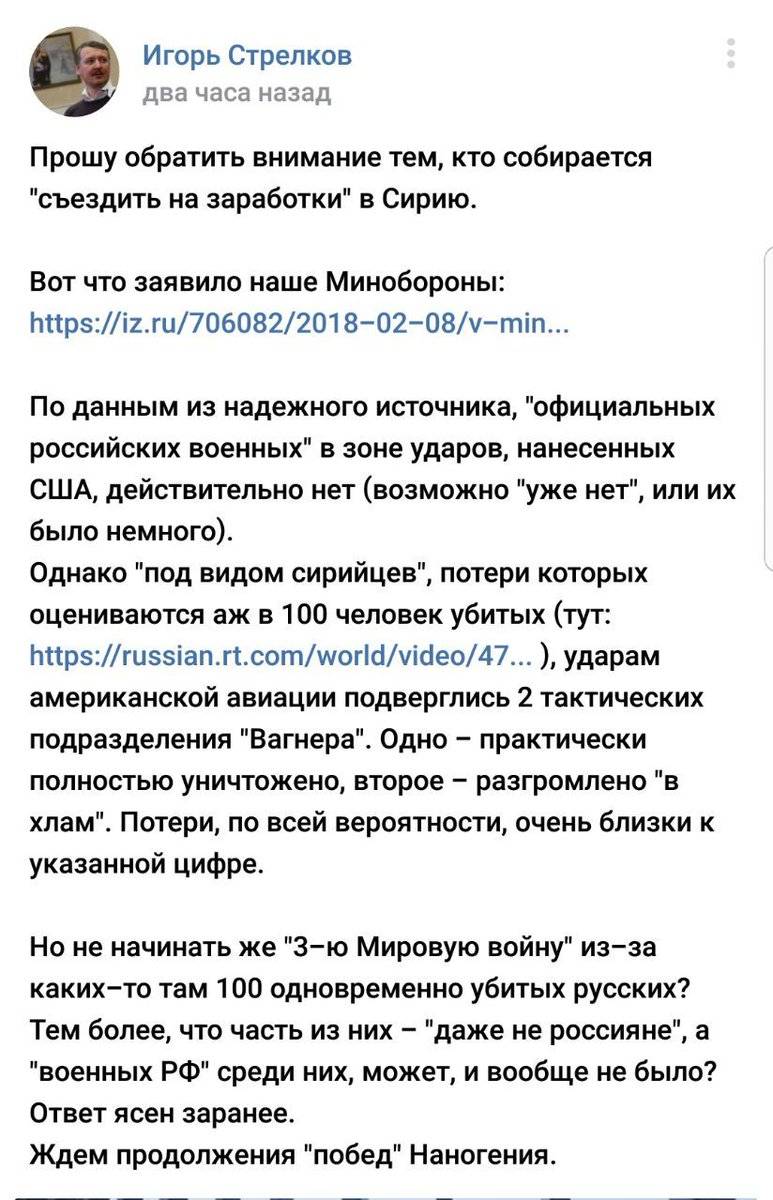 Спустя сутки появилась информация о якобы погибших бойцах частной военной компании "Вагнера" при налете авиации США. Такие данные сообщили сразу несколько источников. Сообщается, что погибло от 15 до 25 человек, около 50 ранено.