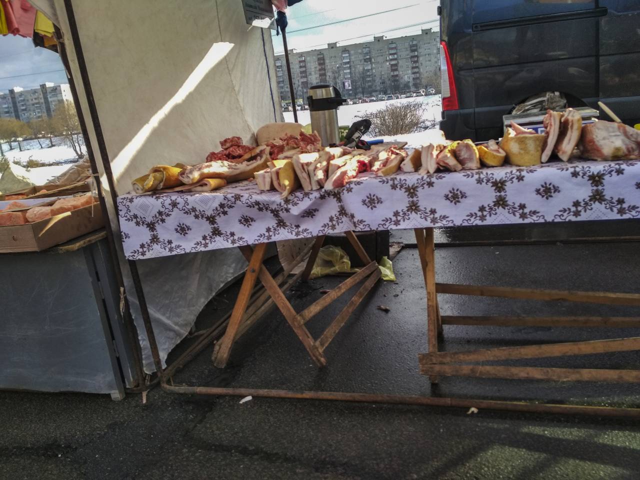 И все довольны. Власть получила денег на карман, торговцы получают возможность быстро сбыть товар, покупатели, которым привезли под подъезд фактически еду, да еще и дешевле, чем на рынке (плюс поторговаться можно!) тоже не печалятся.