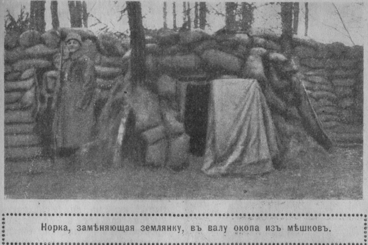 Общий вид позиций, отбитых у германцев. На переднем плане – легкий блиндаж для орудия.