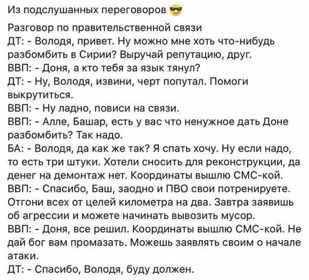 Наши удары были направлены на то, чтобы не дать возможности для применения химического оружия в Сирии. У нас были альтернативы, но ситуация свелась к тому, что мы сочли удары единственным возможным выходом из ситуации.