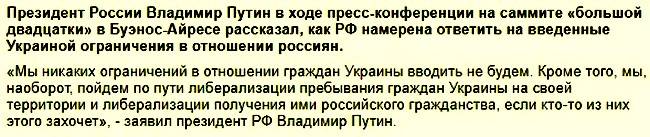 На вопрос, удалось ли ему убедить лидеров других стран «двадцатки» в том, что инцидент в Керченском проливе был провокацией украинской стороны, Путин ответил: «Не знаю, удалось ли их убедить», но «реакция была спокойная».