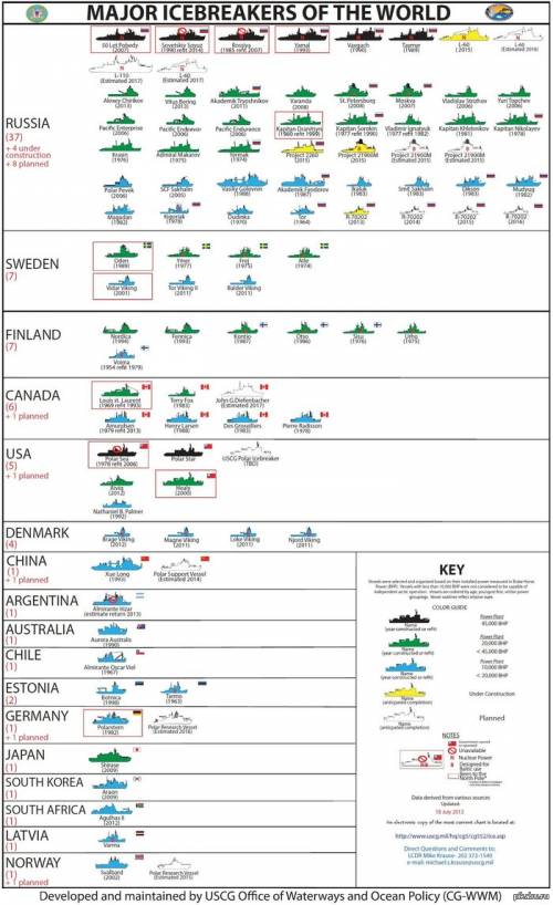 Автор отмечает, что расцвет американского ледокольного флота пришелся на годы Второй мировой войны – тогда было построено 7 ледоколов, три из которых постоянно находились у берегов СССР. Но после войны всё закончилось. Теперь США, являясь крупнейшей морской державой, позволяет себе лишь надеяться, что построенный в 1970-х годах корабль сможет продержаться на плаву еще некоторое время, заключает издание.