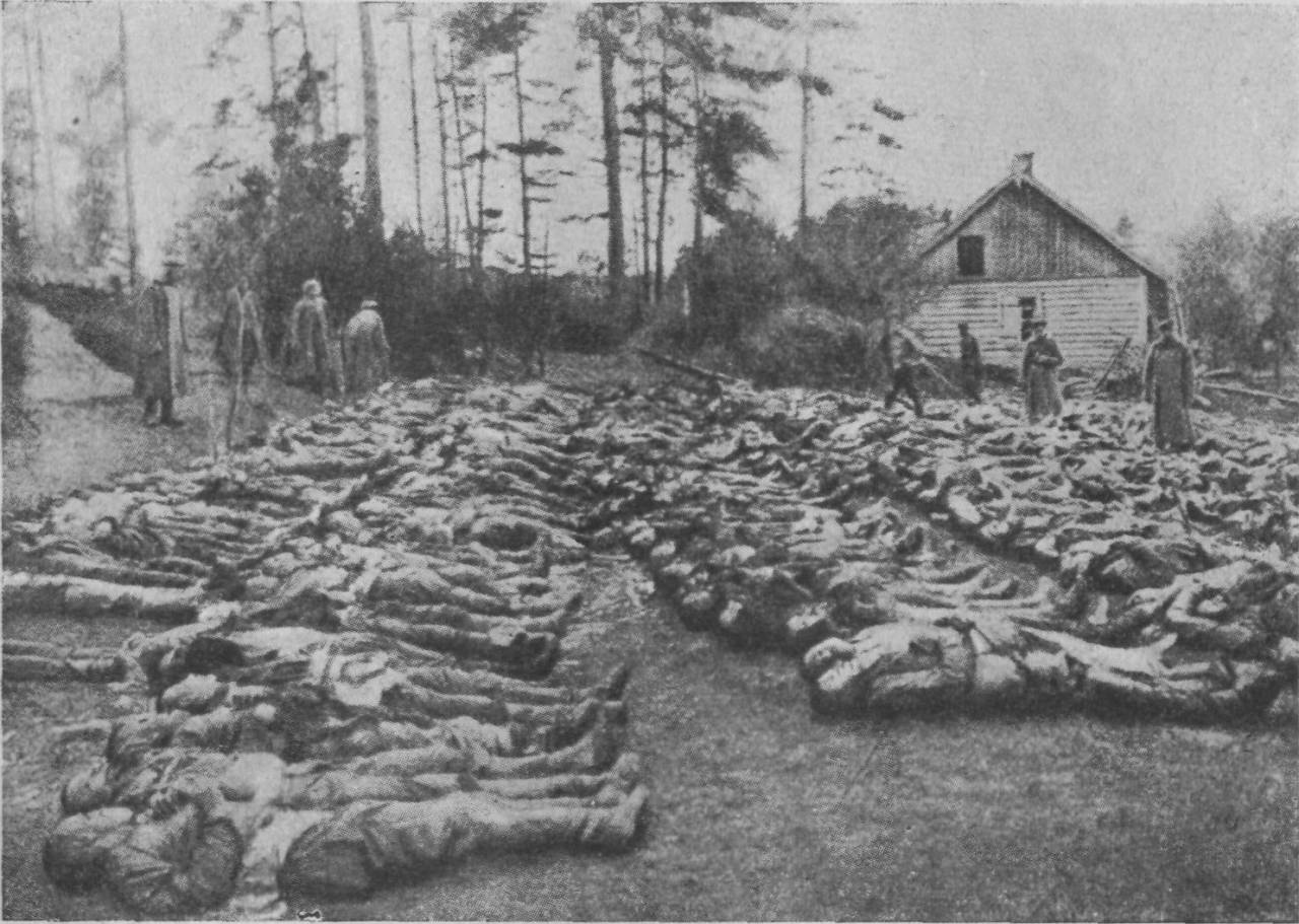 Из Терезина я проехал в Ежувку, далее в штаб 22 полка, штаб 21 полка, в Гузов и Жирардово; во всех этих местах и пунктах можно было собрать сведения, которые свидетельствовали о весьма значительных размерах использования неприятелем ядовитого газа. Число тяжело отравленных было сравнительно велико. Общее число пострадавших было также относительно весьма значительно. При этом применении хлора неприятель учинил следующее зверство. В одном месте некоторыми воинскими частями наши окопы были оставлены, причем самое меньшее несколько десятков тяжело отравленных не были удалены из окопов. В эти окопы вскоре пришли другие русские воинские части и нашли наших отравленных зверски исколотыми, избитыми и изрезанными. По этому поводу я, по предложению господина командира 21 полка, расспрашивал о происшедшем подпрапорщика Петруканца и других лиц, которые сами видели в окопах изувеченные трупы наших отравленных воинов. Нередко встречались трупы с десятью — двадцатью колотыми штыковыми ранами, разбитыми головами, вспоротыми животами и проч. Таким образом, вне всякого сомнения, что в означенных местах нашего Северо-Западного фронта неприятель «повторно применял ядовитые газы, — главнейшие хлор, — резко действующие на человека, причиняющие большие страдания, вызывающие очень мучительную смерть».