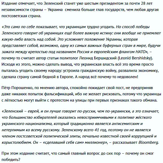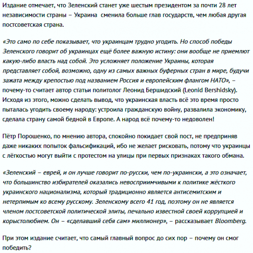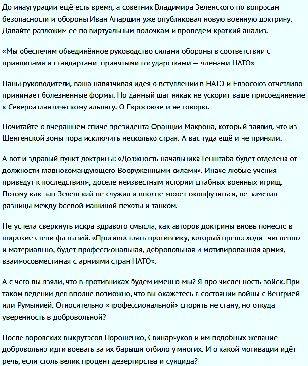 Из этого заявления можно сделать вывод о том, что украинским патриотом в штабе г-на Зеленского считают человека, для которого война в любом случае важнее мира и условий его заключения.