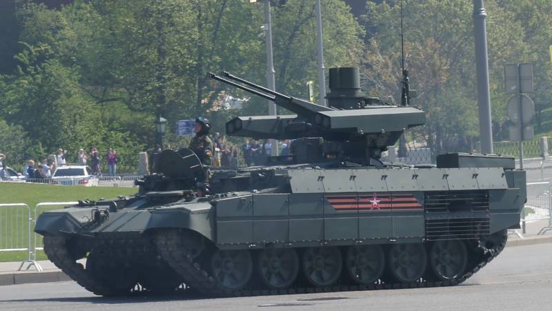 Проход военной техники возглавил танк Т-34. Вслед за ним прошли бронеавтомобили "Тигр-М" с противотанковым комплексом "Корнет-Д" и боевым модулем "Арбалет". Перед трибунами прошли боевые машины пехоты "Курганец-25" и БМП-3, танк Т-14 "Армата" и основной танк Т-72Б3, боевые машины поддержки танков "Терминатор".