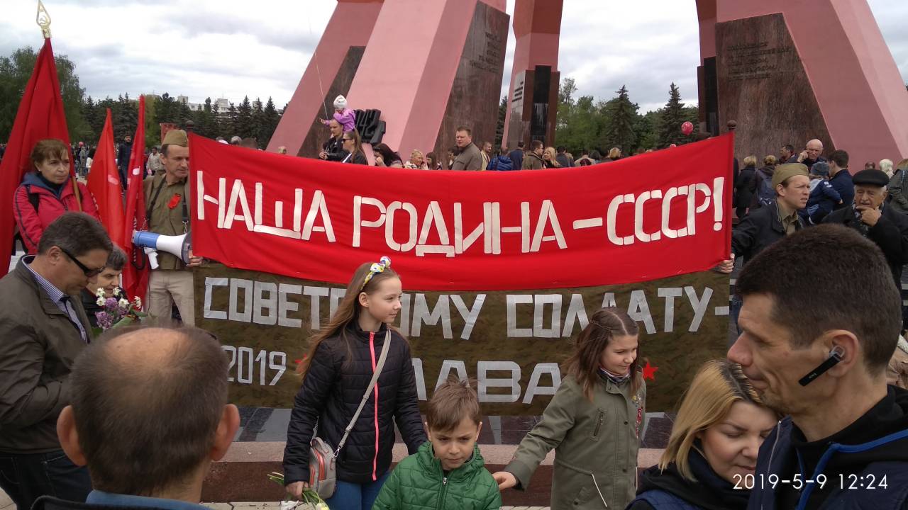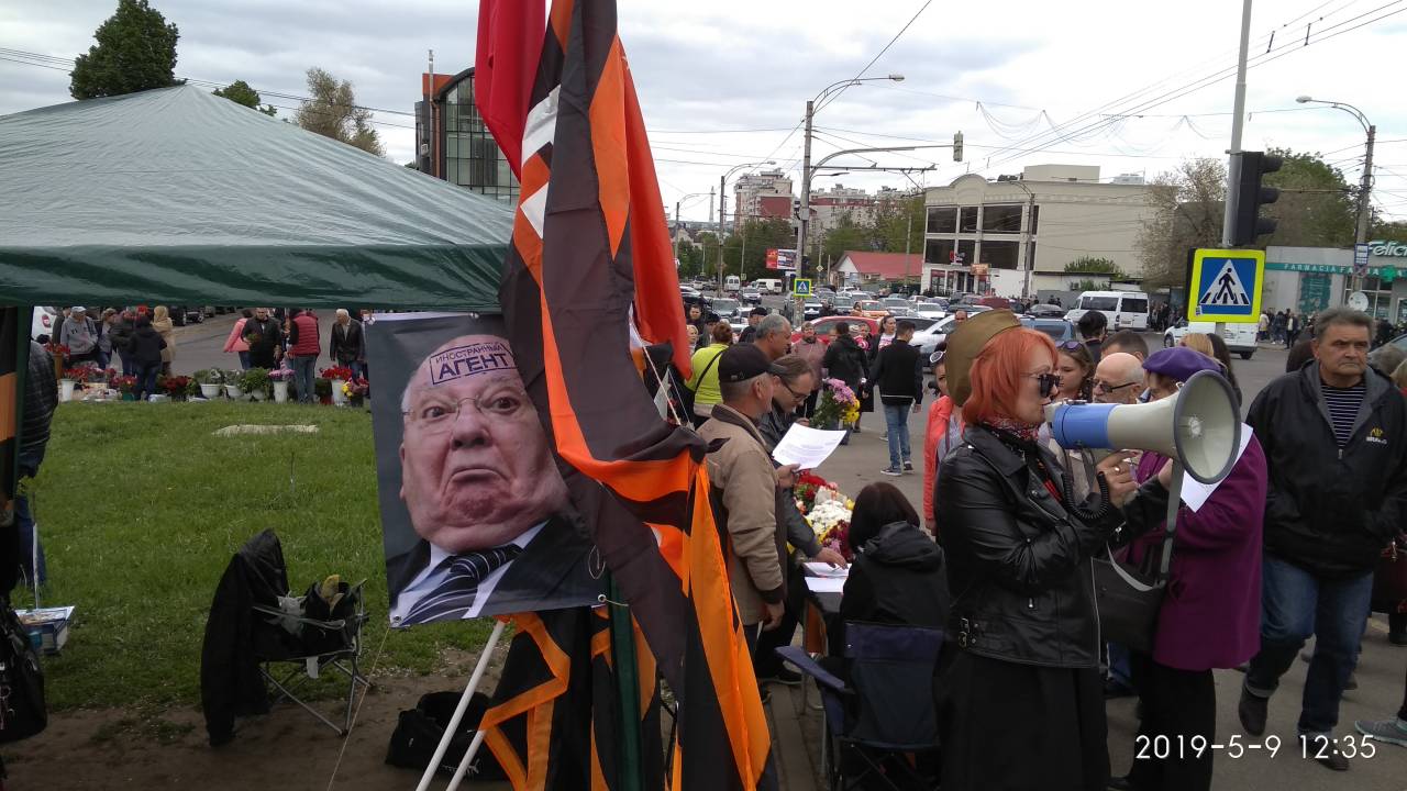 Напротив центрального входа в Мемориал я обнаружил праздничный плакат от партии «ШОР». Судя по объявлениям в СМИ, у них неподалёку была назначена точка сбора их сторонников.