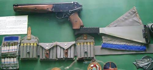 ТП-82 был снабжен специальным прикладом – мачете, с помощью которого космонавт мог прорубить себе тропинку в лесных зарослях, приготовить дрова для костра, построить шалаш или вырыть яму.
