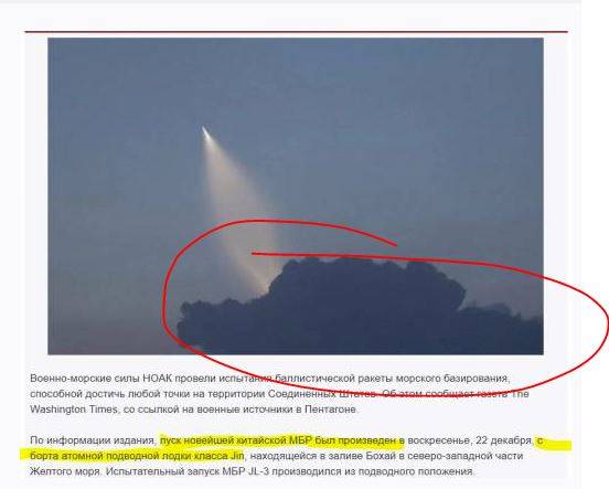 Со своей стороны отметим, что если ВМС НОАК действительно провели испытания перспективной МБР JL-3 (Julong-3, "Цзюйлан-3"), то оно будет уже третьим. Первый пуск был произведен 22 ноября 2018 года, второй - 2 июня 2019 года. Предположительно, что все пуски производились с борта опытовой дизель-электрической ракетной лодки проекта 032, прошедшая специальную модернизацию для проведения испытаний нового типа баллистических ракет.