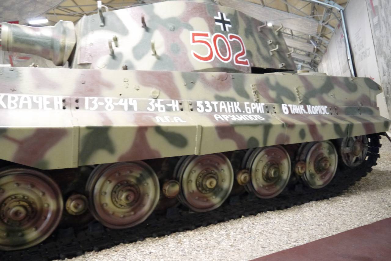 После разгрузки в Кубинке с платформы поезда у танка заклинила правая бортовая передача. Вскрытие показало, что она по необъяснимой причине полностью разрушилась. Здесь очень пригодился 502-й «Тигр Б», с которого и сняли живую бортовую передачу.