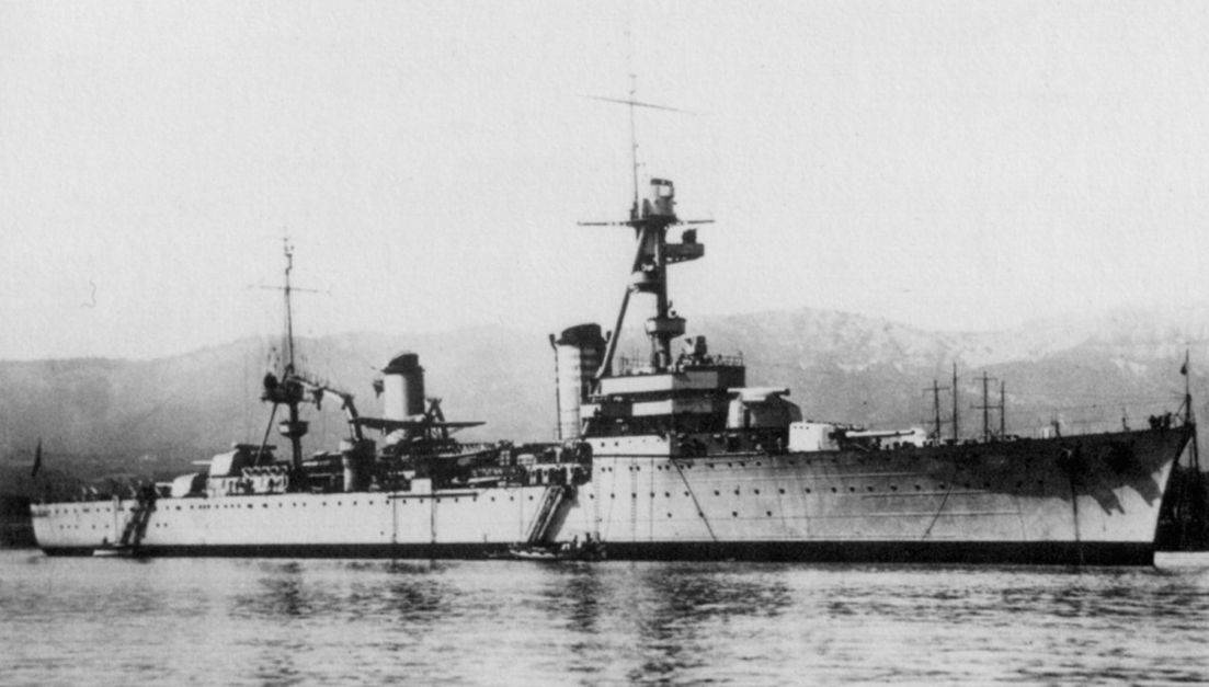 Однако спокойно умереть крейсеру не дали. И в 1942 году он был поднят и отправлен в Тулон на ремонт. Там демонтировали авиационное оборудование и торпедные аппараты. Вместо них установили РЛС и дополнительно зенитное вооружение. Крейсер был включен в отряд британских кораблей.