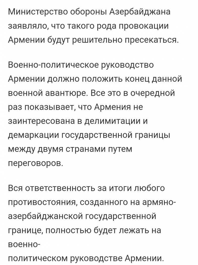 На заседании Совета Безопасности Армении Никол Пашинян заявил, что смена кадров связана с обострением на границе с Азербайджаном. Глава правительства республики заявил, что азербайджанские военные вторглись на территорию Армении. Действия Баку стали темой для обсуждения в Ереване на самых разных уровнях. При этом армянские власти не конкретизируют, на каком участке так называемое вторжение произошло и может ли речь идти о коридоре из Нахичеванского региона Азербайджана в его, если можно так выразиться, основную часть.