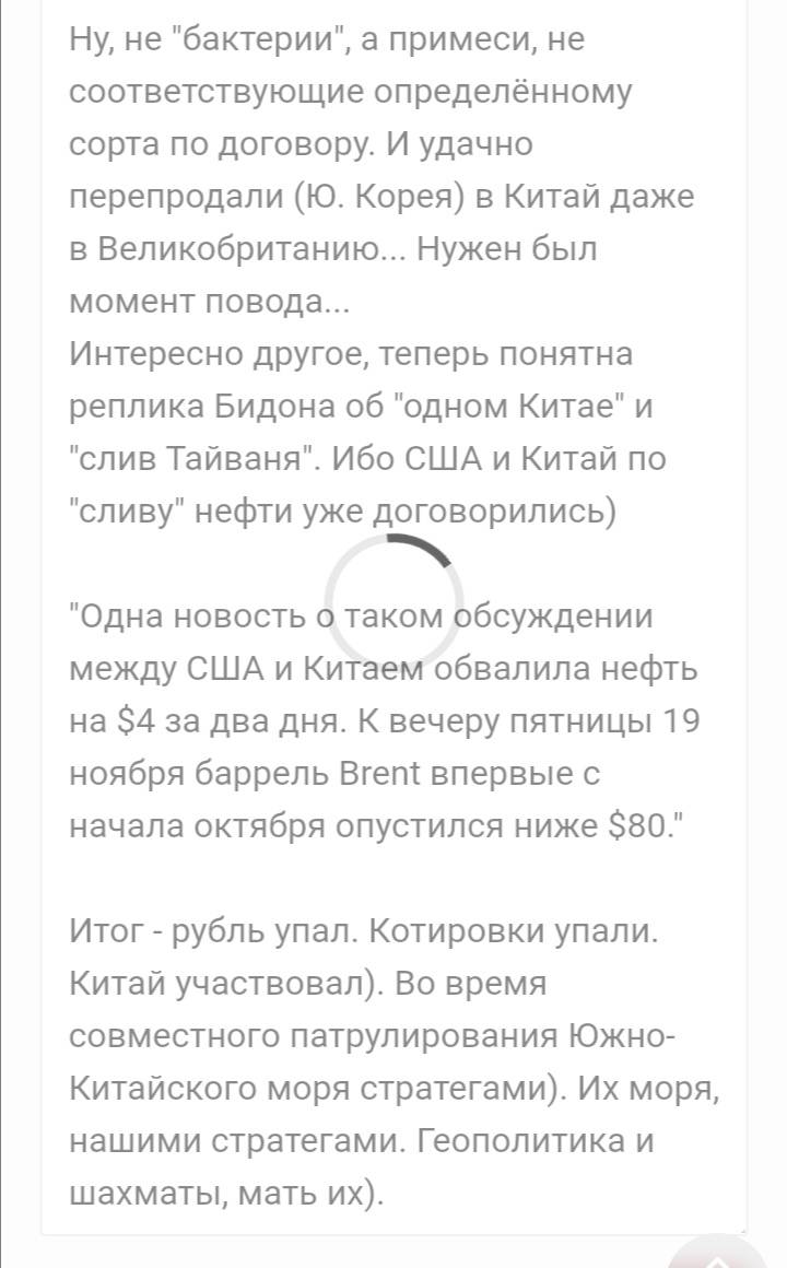 Примечательно, что Вашингтон идет на этот шаг не самостоятельно, а предварительно заручившись поддержкой других крупнейших в мире потребителей нефти. Речь идет о Китае, Японии, Южной Корее, Индии и Британии. Эти страны также готовы последовать примеру Соединенных Штатов и вывести часть сырья из своих резервов на внешний рынок.