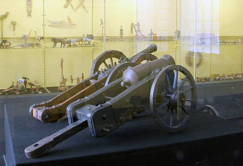 Ну а царь на российском императорском престоле был прежде всего воином, отсюда обилие военных игрушек в его игровом «арсенале». Самому мне довелось побывать в этом музее ещё в советское время. Представленные здесь фотографии, к сожалению, делал не я, а подписи, из которых было бы ясно – какому наследнику-цесаревичу принадлежали, имеются не ко всем экспонатам. Но – давайте просто посмотрим на них и восхитимся качеством их исполнения. А с какими-то игрушками познакомимся и поближе…