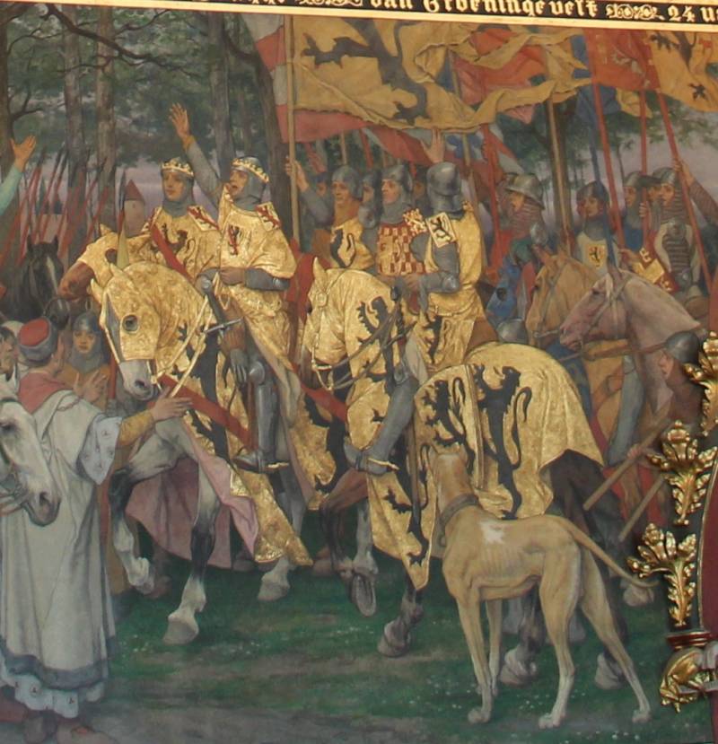 А было так, что король Франции Филипп IV в 1297 году начал войну с графством Фландрия, чтобы прибрать его к рукам. Как всегда, нашлись местные коллаборационисты, например, Жан II д’Авена, но были и патриоты во главе с графом Ги де Дампьером, который через брак с английской королевской семьёй пытался добиться союза с Англией против Франции. Сторонники французов назывались «Лилии», а их противники – сторонники независимости – «Когти», во главе которых стоял Петер де Конинк.