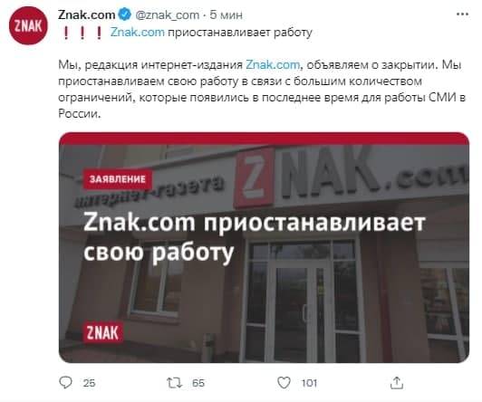 Ранее по требованию Генпрокуратуры были заблокированы радиостанция "Эхо Москвы" и телеканал "Дождь"* (признан иноагентом). Основанием послужило систематическое размещение фейков о проводимой на Украине спецоперации. 3 марта совет директоров радиостанции "Эхо Москвы" принял решение о ликвидации радиоканала и сайта.