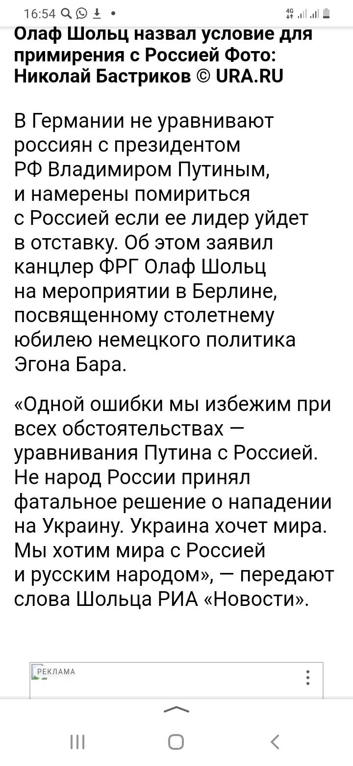 Однако в администрации президента незалежной отреагировали уже стандартным образом. Советник Михаил Подоляк заявил, что большая часть россиян - 70% - выступает за силовое решение украинской проблемы, в связи с чем они должны разделить ответственность вместе с Кремлём; а призыв Шольца является попыткой оправдать нерешительность немецких властей.
