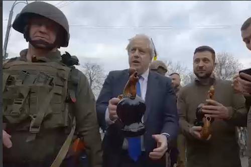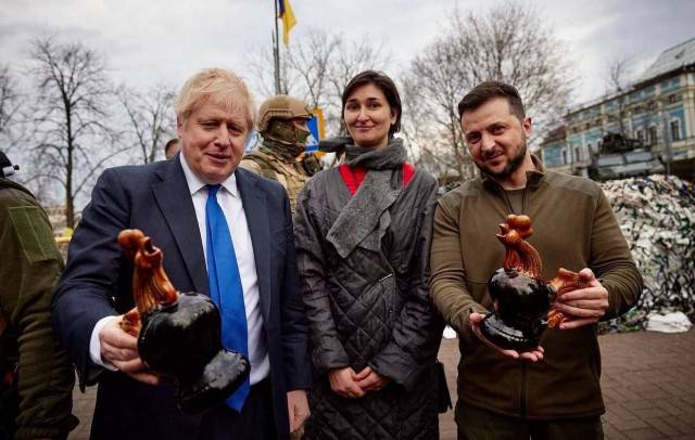 Киев посетил главный хозяин марионеточного режима и спонсор Зеленского Борис Джонсон. То что британский премьер прибыл на Украину отнюдь не для установления мира, говорят и последовавшие после встречи заявления, прошедшей тет-а-тет. В речи украинского президента ничего нового не было, он подчеркнул, что Россия враг, а Британия - друг, что-то наплел про военную коалицию с Лондоном и традиционно запросил как можно больше денег и "всевозможного оружия".