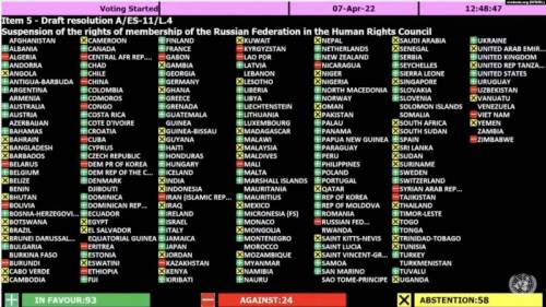 Результат голосования на Генассамблеи ООН за приостановку членства России в СППЧ