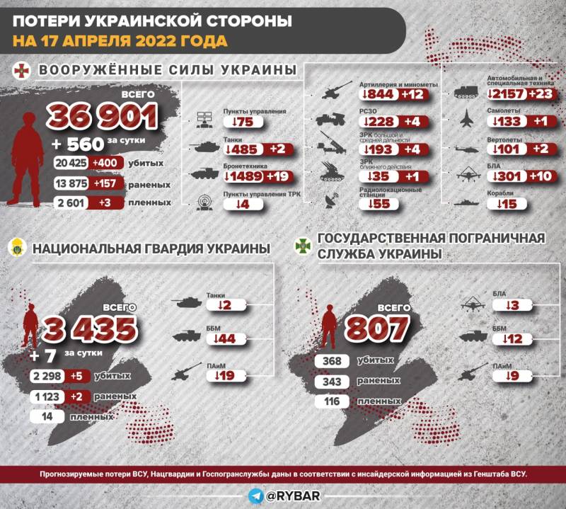 Оперативно-тактическая авиация в течение дня работала по позициям ВСУ и нацбатов, уничтожено 44 военных объекта, в том числе: командный пункт и локатор ЗРС С-300 в районе Авдеевки, три склада РАВ в районах Завгороднее и Протопоповка, в районах Красный Лиман, Новоселовка, Рубежное, Угледар, Попасная, Пришиб и Гусаровка наносились удары по местам сосредоточения личного состава и бронетехники ВСУ.