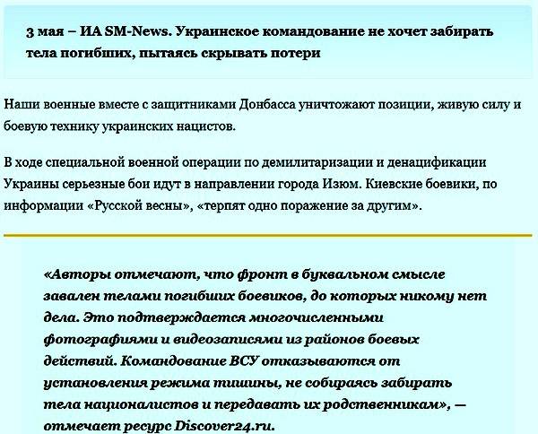 Таким образом, минные поля, карты которых имеются в распоряжении далеко не всех украинских формирований под Авдеевкой, в такой ситуации играют ещё и против самих военнослужащих киевского режима. Причина в том, что минировались территории разными подразделениями, отдельные из которых уже понесли столь значительные потери, что их Киеву пришлось их подвергнуть полной реорганизации и реструктуризации. Или же они просто перестали существовать как самостоятельные единицы.