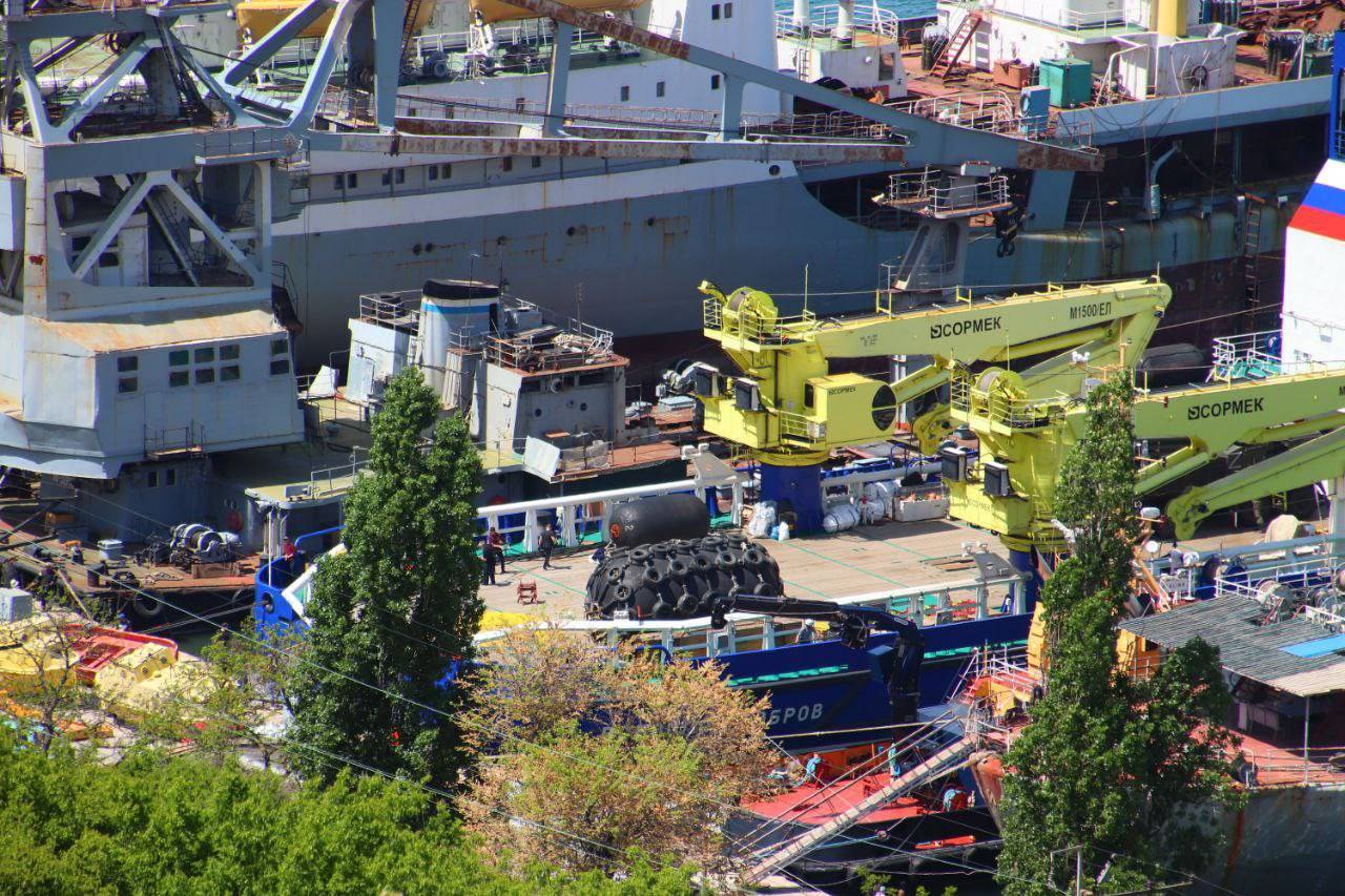На фотографиях, опубликованных Черноморским флотом РФ в своем Telegram-канале, видно, как «Бобров» стоит пришвартованный правым бортом в Севастополе и не имеет никаких видимых повреждений.