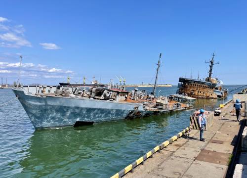 Поднятие частично затопленного корабля, который в своё время использовала украинская государственная пограничная служба, проведено в результате очистки порта Мариуполя.