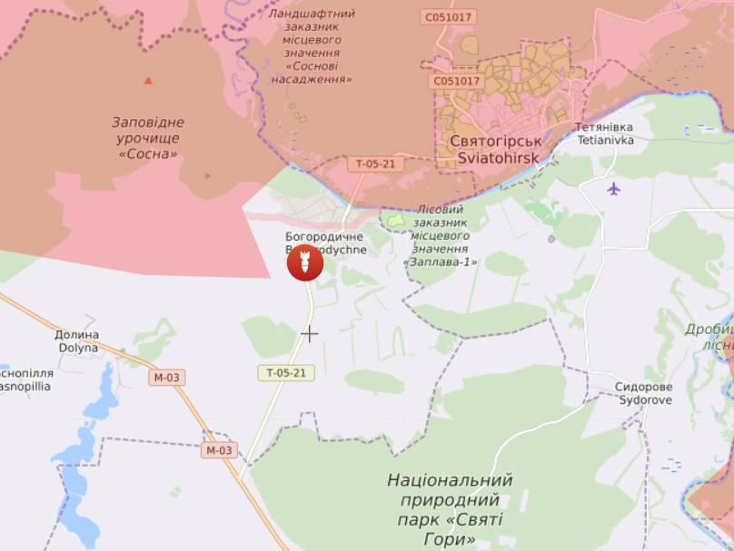 Тем временем стало известно о выравнивании ВС РФ линии фронта к юго-западу от ранее освобождённого Святогорска. По последним данным, российские войска вошли в населённый пункт Богородичное. При его полном освобождении появляется возможность взять под контроль обширные площади на правом берегу Северского Донца и продвинуться к Славянску с северо-запада.