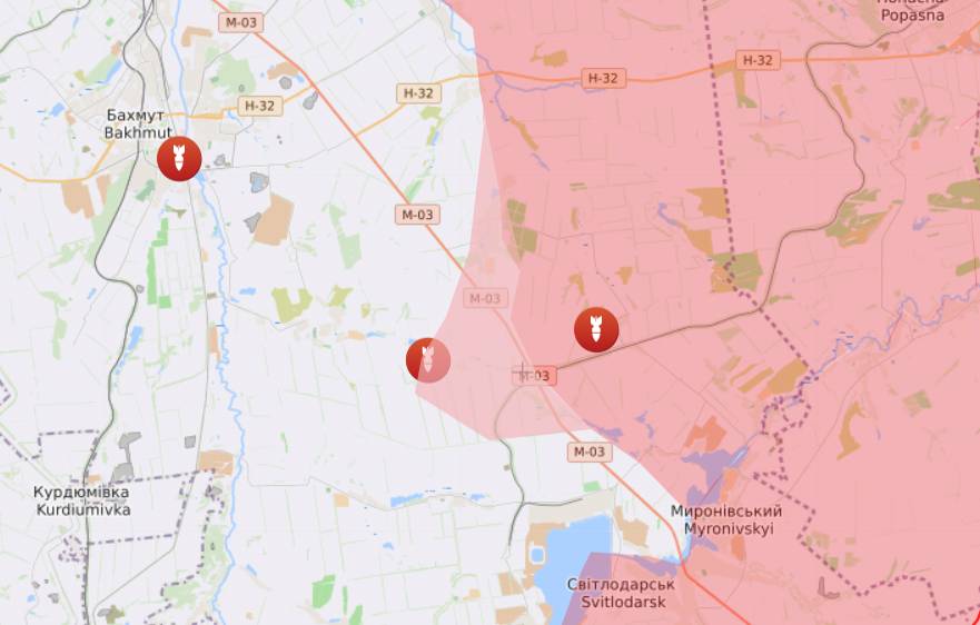 Под контроль ВС РФ на этом направлении перешёл участок трассы М-03 Светлодарск - Артёмовск - Славянск. Российские войска, что подтверждает ГШ украинских вооружённых сил, проводят штурмовую операцию в селе Вершина, что неподалёку от Артёмовска (Бахмута).