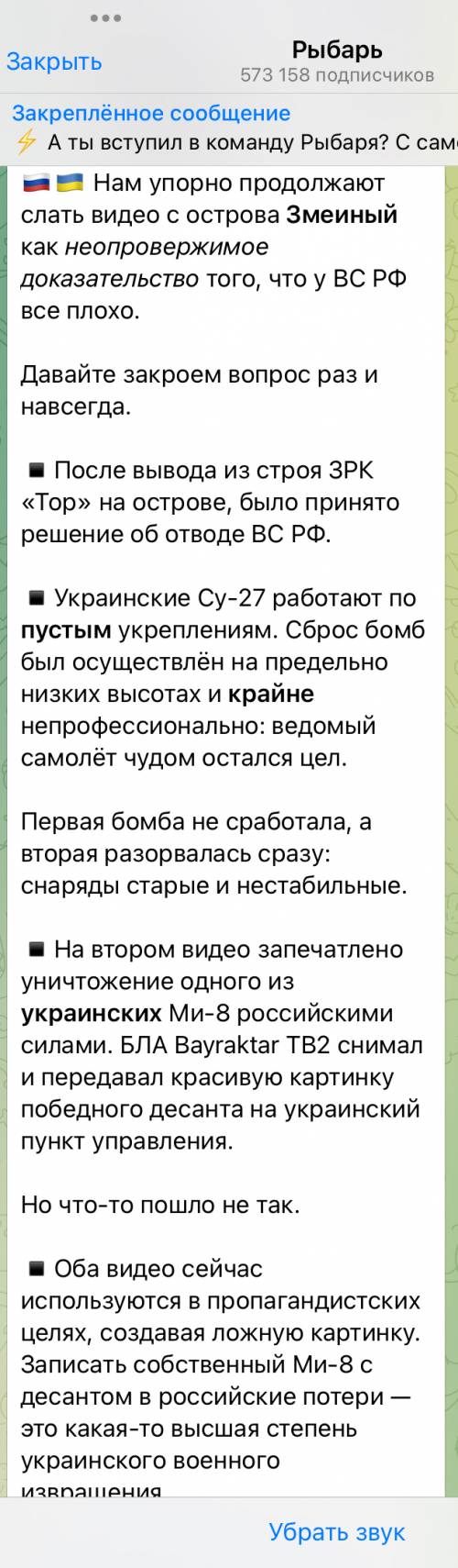 Однако источники в ВМФ РФ удар по Змеиному не подтверждают. Одновременно приходит информация, что в районе острова ВВС Украины могли потерять от двух до трех самолетов, поскольку в ту сторону ушло четыре штурмовика, а вернулся всего один. В то же время подтверждений этому нет, тем более что ВВС ВСУ используют тактику "кочующих самолетов", когда авиация взлетает с одного аэродрома, а приземляется на другой.