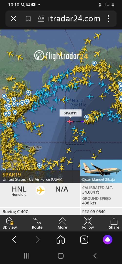 После вылета с Гавайских островов, о чём сообщает ряд западных СМИ, самолёт Пелоси взял «неопределённый курс». Отметки его движения на электронных картах по-прежнему нет. В информационном бюллетене, который должен обозначать начальный и конечный пункты маршрута, конечного пункта не указано.