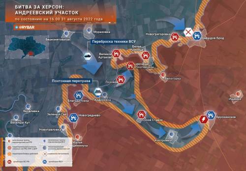 По данным ТГ-канала Рыбарь, подразделения ВСУ при поддержке бронетехники пытаются пробиться в сторону трассы на Новую Каховку, по ним работает российская артиллерия и авиация. ВСУ удалось войти в Безыменное, но там они попали под удар российской авиации. По позициям националистов отработали фронтовые бомбардировщики Су-34, свалив на головы всушникам пару десятков бомб ФАБ-500.