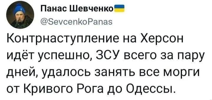 Министерство обороны выпустило новую сводку, где уделило совсем немного внимания происходящему на юге Украины, сообщив только о попытках ВСУ контратаковать. Поэтому сначала немного неофициальной информации из других источников. На Андреевском участке, где ВСУ удалось закрепиться на южном берегу Ингульца, больших перемен нет. Сам плацдарм продолжает существовать, простреливается насквозь, противник несет большие потери, но продолжает упорно переправляться и пытаться контратаковать. При этом резервов бронетехники у ВСУ там нет, если только за ночь что-то не перебросили с других участков. Ситуация как-то стабилизировалась, на утро никаких сообщений об изменении обстановки не поступало.