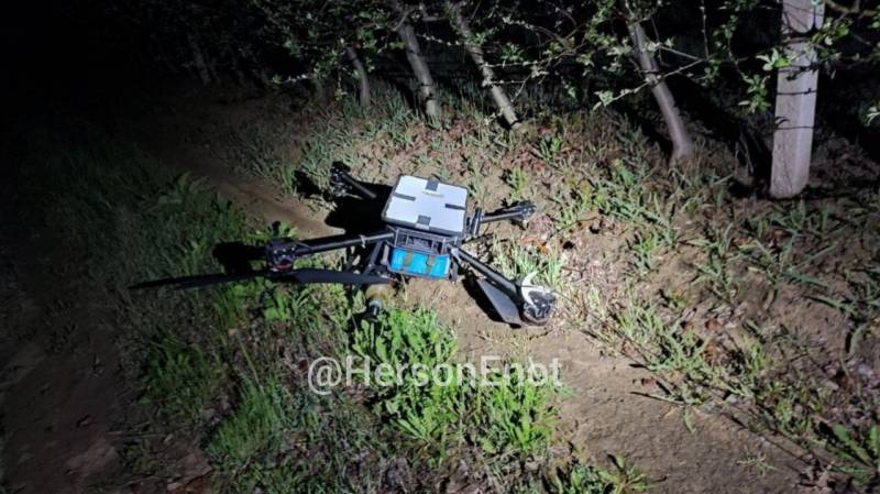 По информации Telegram-канала «Енот из Херсона», коптер был вооружен двумя термобарическими гранатами. Одну из гранат он успел сбросить до того, как был сбит российскими военнослужащими.