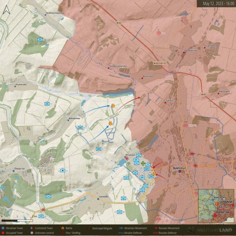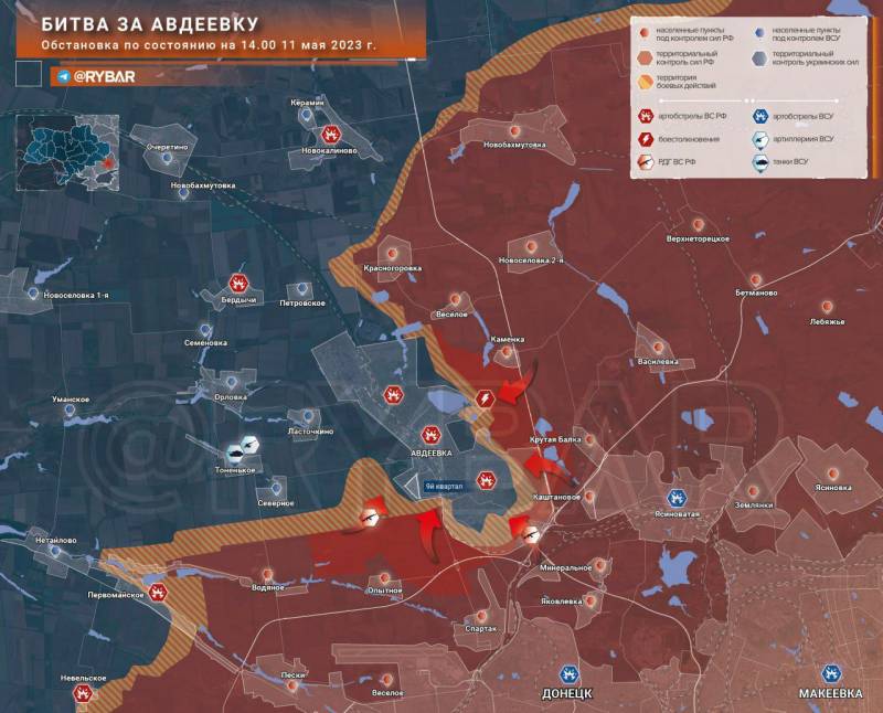 Кроме того, на Малоильиновском направлении подразделения ВС России продвинулись вперед и заняли более выгодный для обороны рубеж в районе Берховского водохранилища. В ходе боев уничтожено более 540 украинских военных, 8 танков и более 20 единиц другой бронетехники. Общие потери на Донецком направлении: около 900 "двухсотых" и "трехсотых", более 30 единиц бронетехники, две гаубицы Д-30 и одна гаубица L-118. В районе Часова Яра сбит украинский Су-27. В районе Авдеевки уничтожен склад боеприпасов.