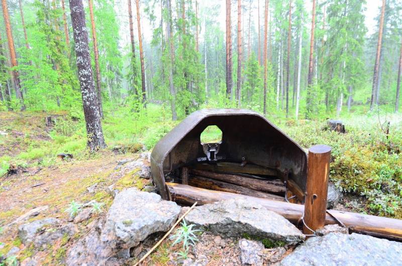 Лес до сих пор хранит добротно выполненные укрытия и позиции для стрельбы из дерева (нам знакомы участки обороны, на которых дзоты и блиндажи находятся практически в первозданном виде и отличной сохранности), такова специфика региона. Чего, к сожалению, нельзя сказать про доты, большинство из которых взорваны после завершения боёв.