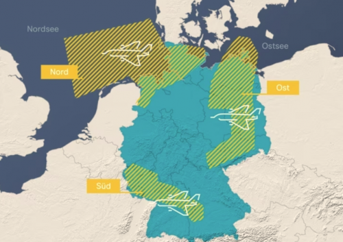 В рамках учений будут отрабатываться учебные задания в трех летных зонах: над севером Германии и акваторией Северного моря, над восточной, а также в меньшей степени - над южной частью страны.