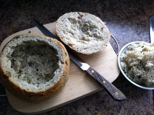 Они также ели хлеб, причем снежно-белый, из муки тонкого помола, пышный и ноздреватый. Соответственно для слуг в замке выпекали хлеб отдельно, и он был тёмный, грубый и с отрубями. Но этот хлеб также подавали и на стол сеньору, используя его нарезанные ломти в качестве тарелок, поскольку он хорошо впитывал жир, мясной сок, а также подливу. Потом ломти этого хлеба отдавали нищим – дело было весьма богоугодное, открывавшее ворота рая, и – собакам, что было выгодно в практическом отношении.