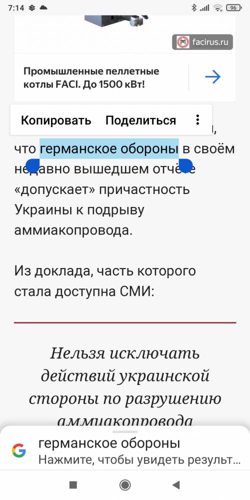 В немецкой прессе представлено мнение министерства обороны Германии по вопросу подрыва участка аммиакопровода Тольятти-Одесса. Речь идёт, судя по всему, об участке в Харьковской области.