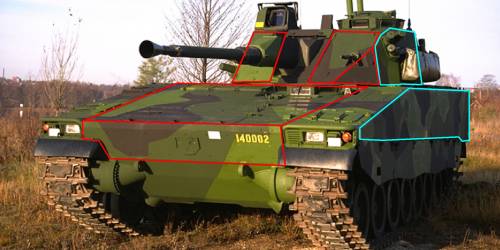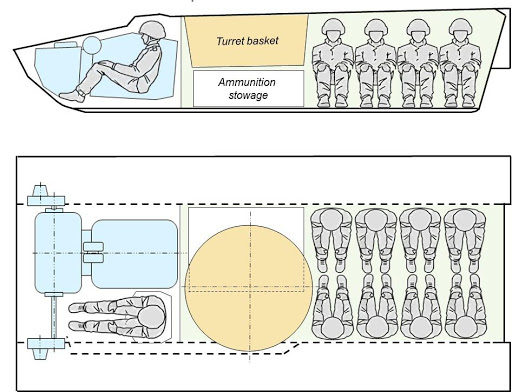 При весе 37 тонн CV9040C превосходит американский M2A2 Bradley на 12 т, обеспечивая повышенную броневую защиту. БМП оснащена системой программирования боеприпасов, климат-контролем и противоосколочными вкладышами.
